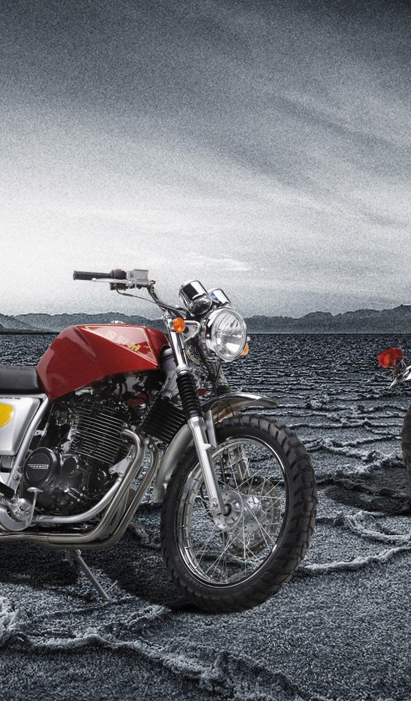 Wallpaper Two SWM Silver Vase 440 motorcycles under a stormy sky