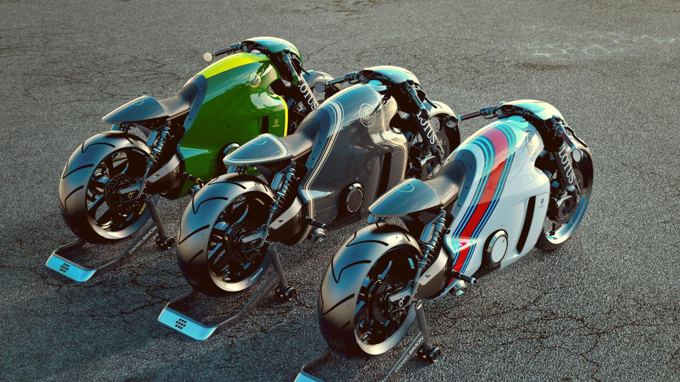 Wallpaper Three Lotus C01 motorcycles on the pavement