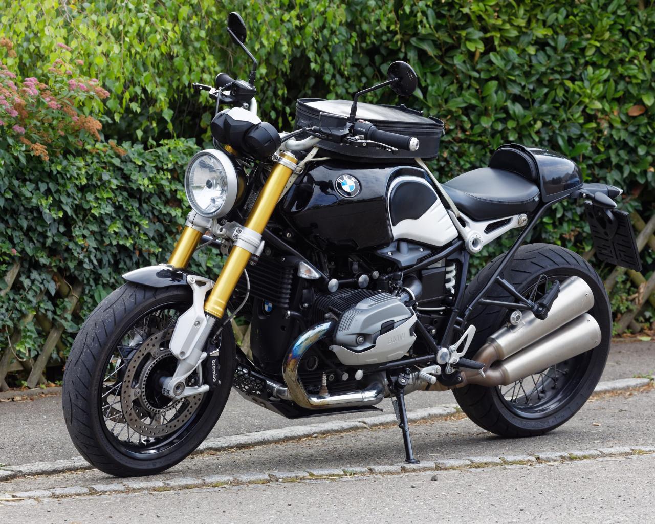Wallpaper Black motorcycle BMW R nine on the track
