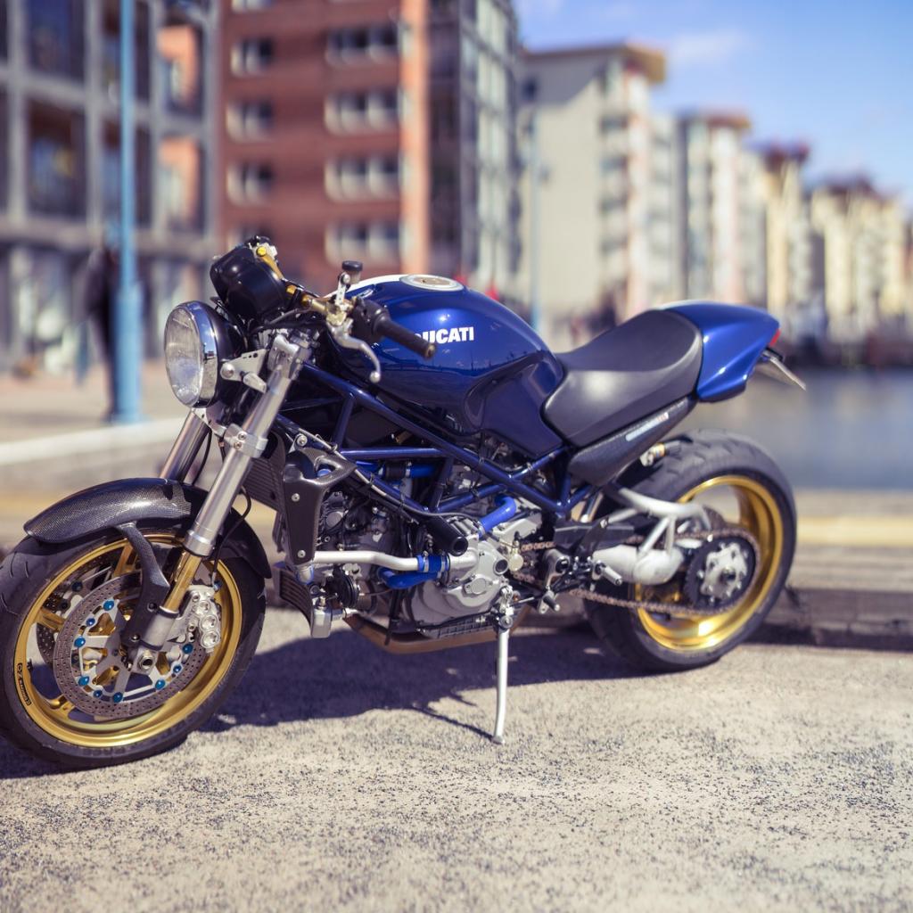 Wallpaper Blue motorcycle Ducati in the city