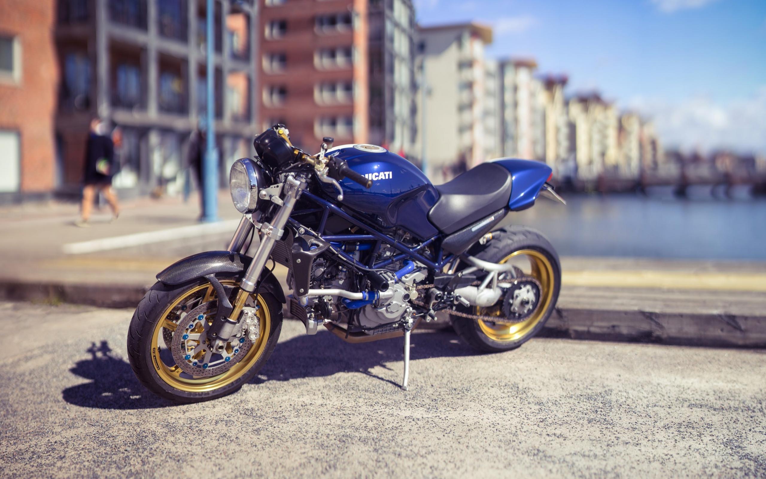 Wallpaper Blue motorcycle Ducati in the city