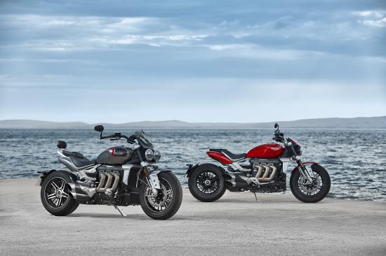 Wallpaper Two 2021 Triumph Rocket 3 motorcycles on the shore