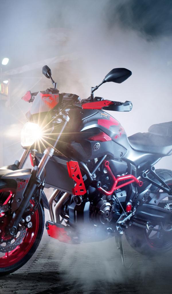 Wallpaper Motorcycle Yamaha MT-07 with the headlight on