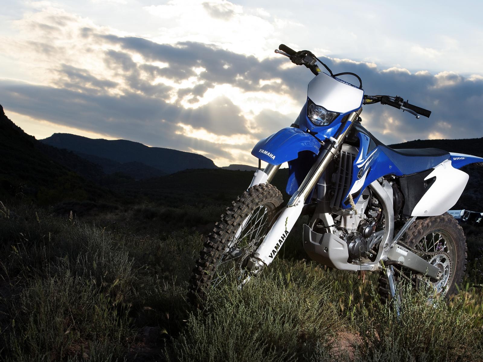 Wallpaper Motorcycle Yamaha on the grass in the mountains
