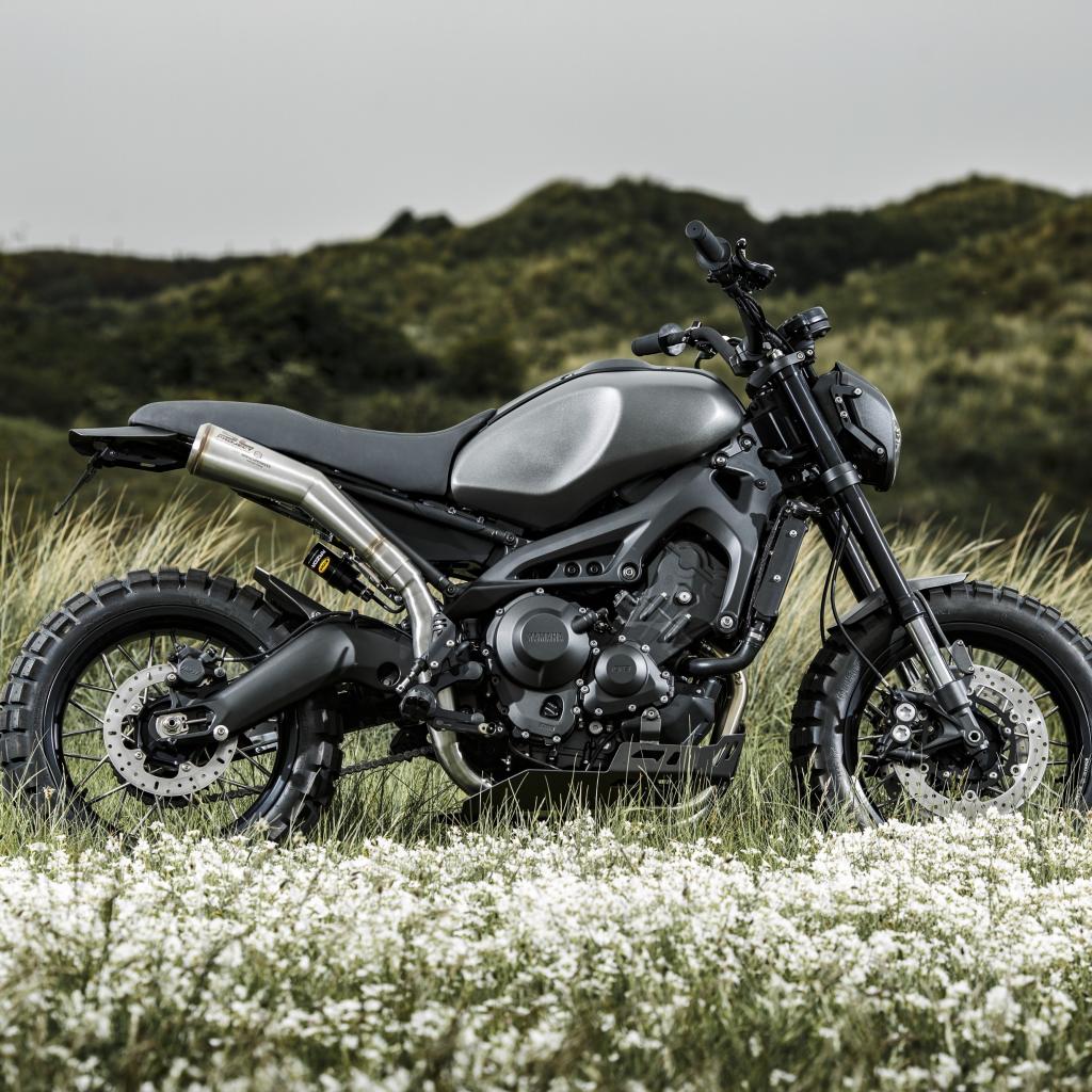 Wallpaper Black Yamaha Tuning XSR900 motorcycle in the field