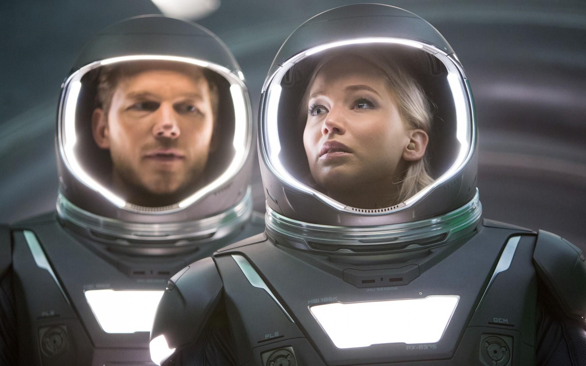 Wallpaper The main characters of the film Passengers in spacesuits