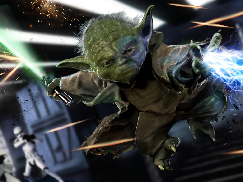 Wallpaper Yoda with lightsaber Star Wars movie