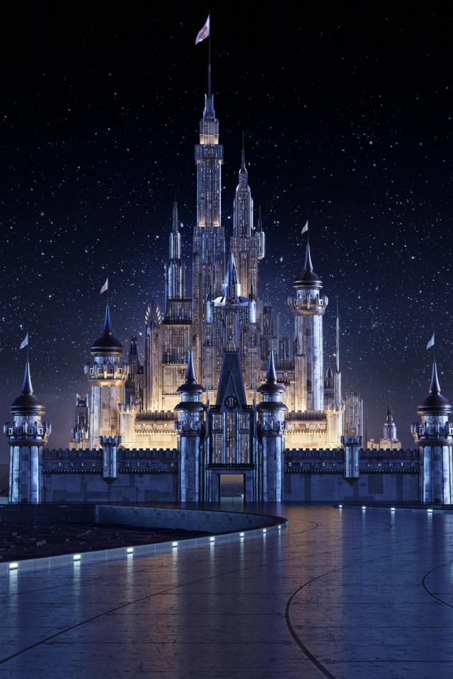 Wallpaper Robots R2-D2 and BB-8 against the background of the Disney castle