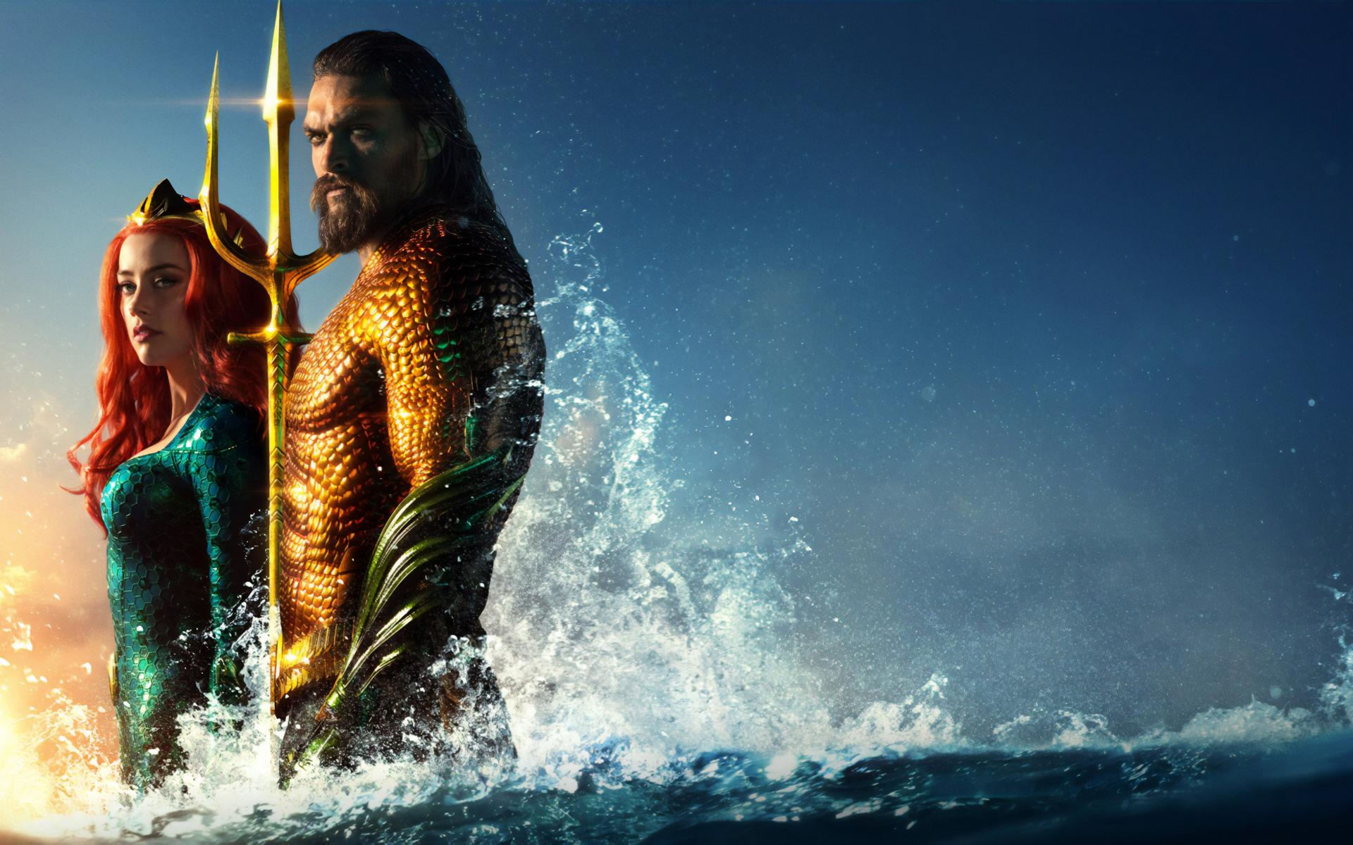 Wallpaper Actor Jason Momoa and actress Amber Heard in the movie Aquaman