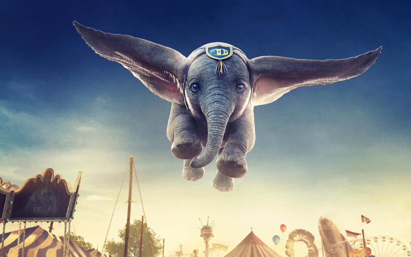 Wallpaper Gray little baby elephant Dumbo in the air