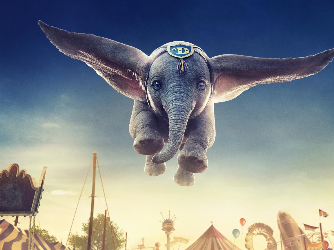 Wallpaper Gray little baby elephant Dumbo in the air