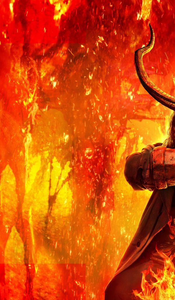 Wallpaper The protagonist of the film Hellboy 2 on the background of red-hot lava