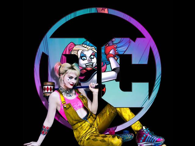 Wallpaper Harley queen character u logo on black background