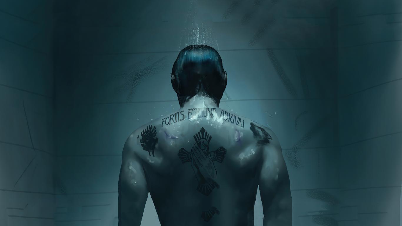 Wallpaper Movie character John Wick with tattoos on his back