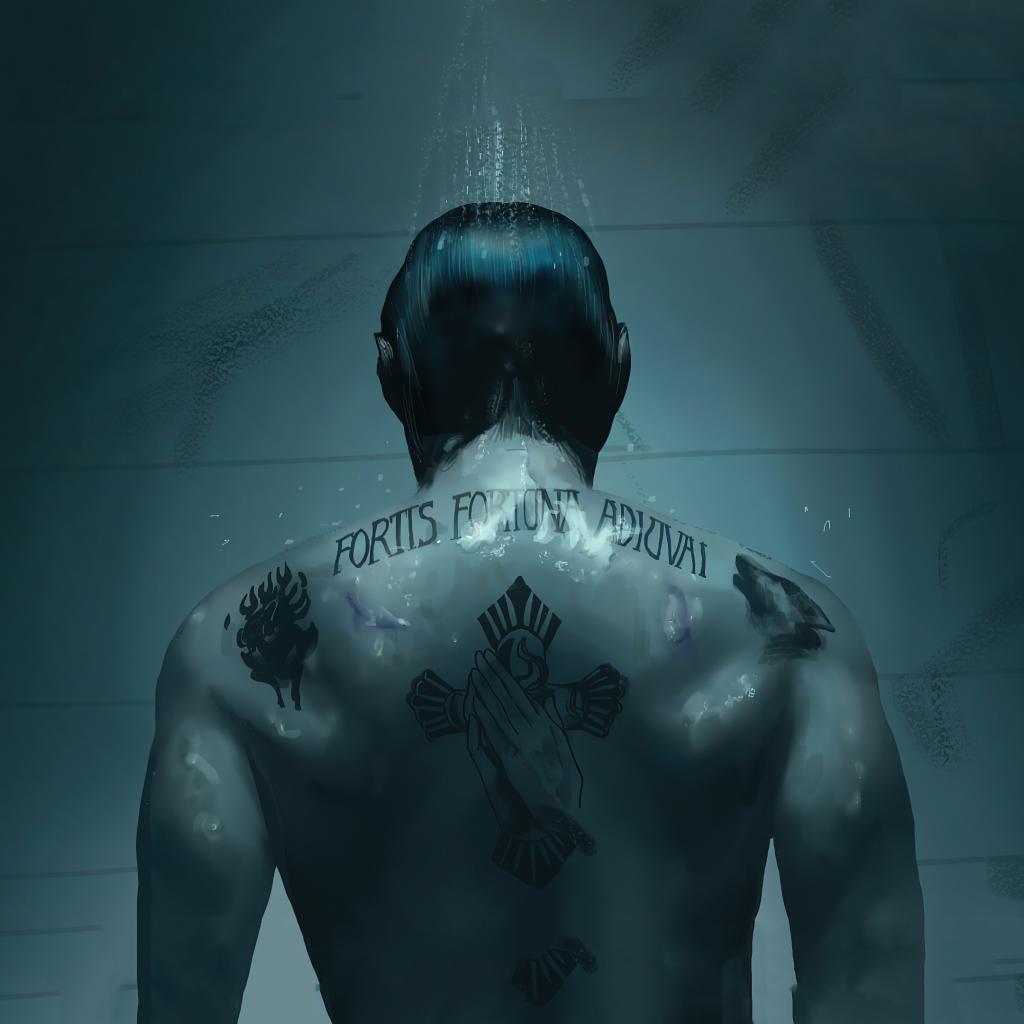 Wallpaper Movie character John Wick with tattoos on his back