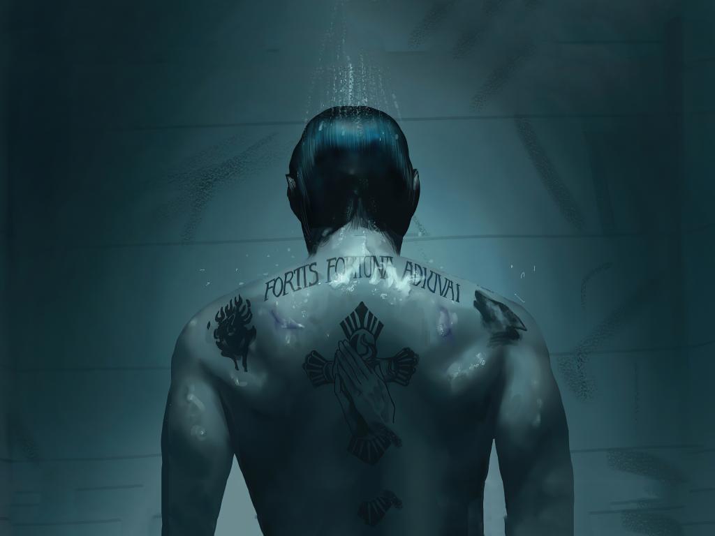 Wallpaper Movie character John Wick with tattoos on his back