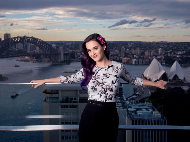 Wallpaper Beautiful American singer Katy Perry on the background of the city