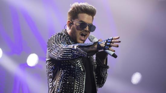 Wallpaper American singer Adam Lambert on stage with a microphone