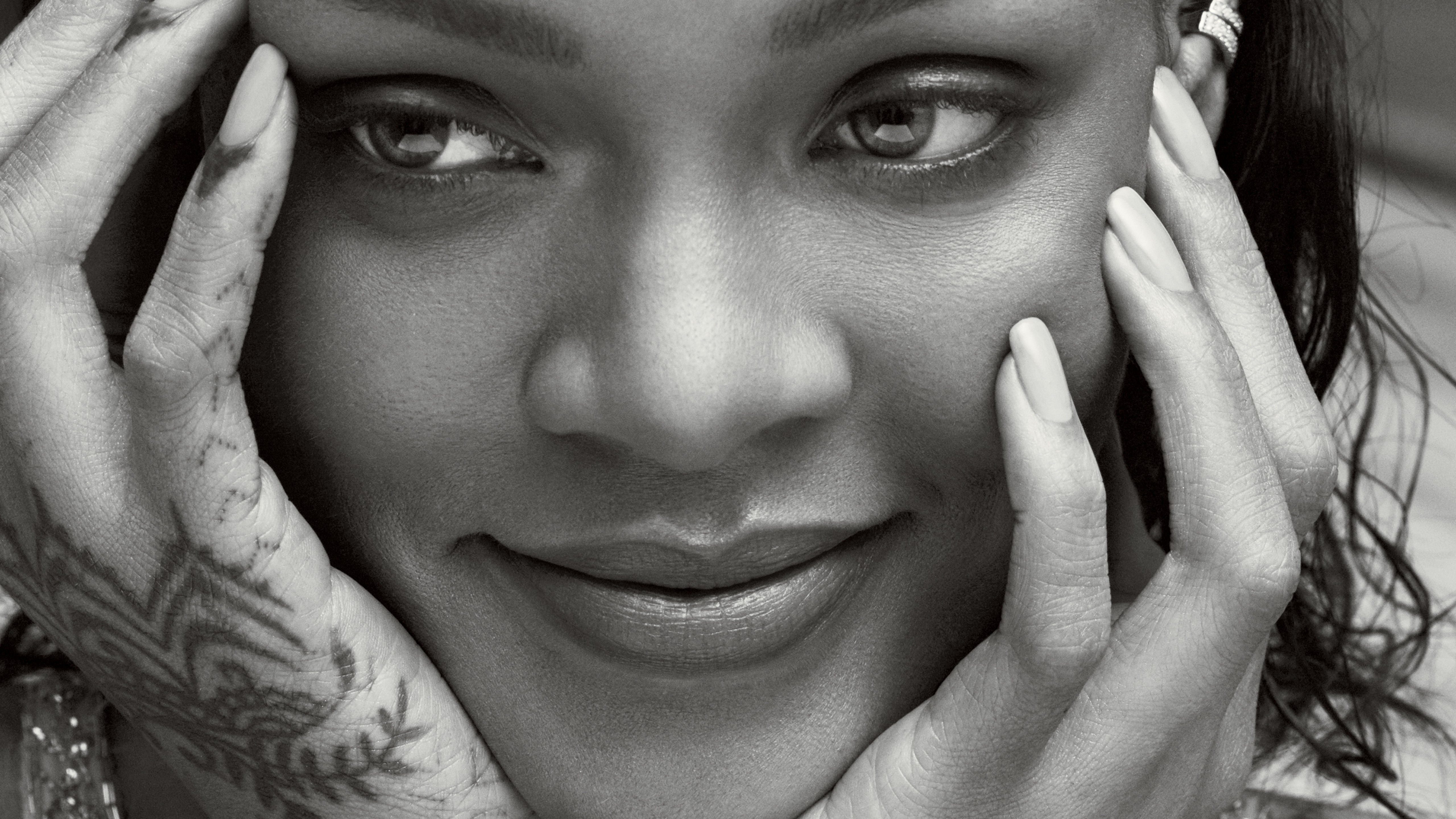 Wallpaper Popular singer Rihanna, black and white photo