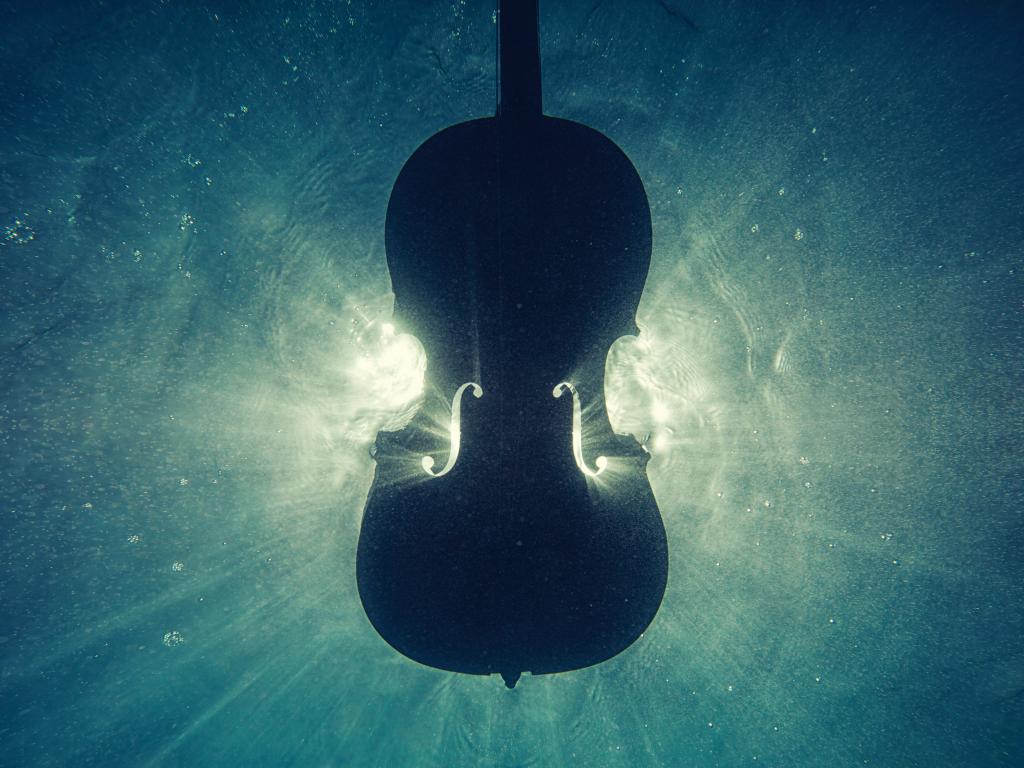 Wallpaper Violin drowns in the water