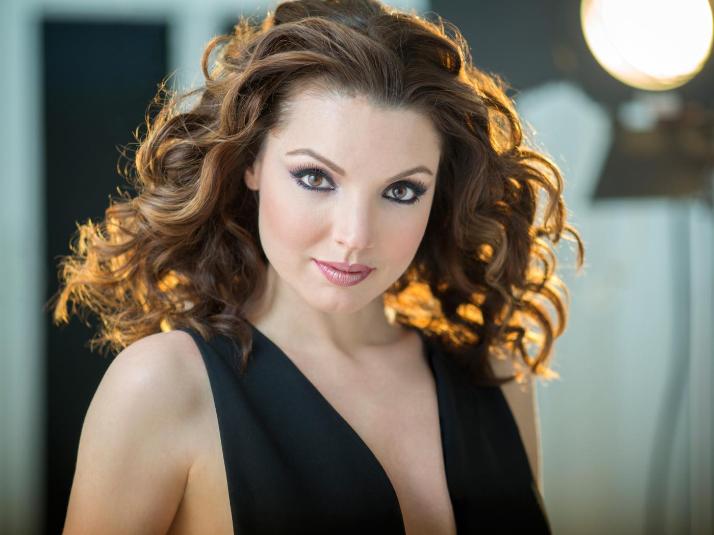 Wallpaper American soprano singer Sarah Joy Miller in a black dress