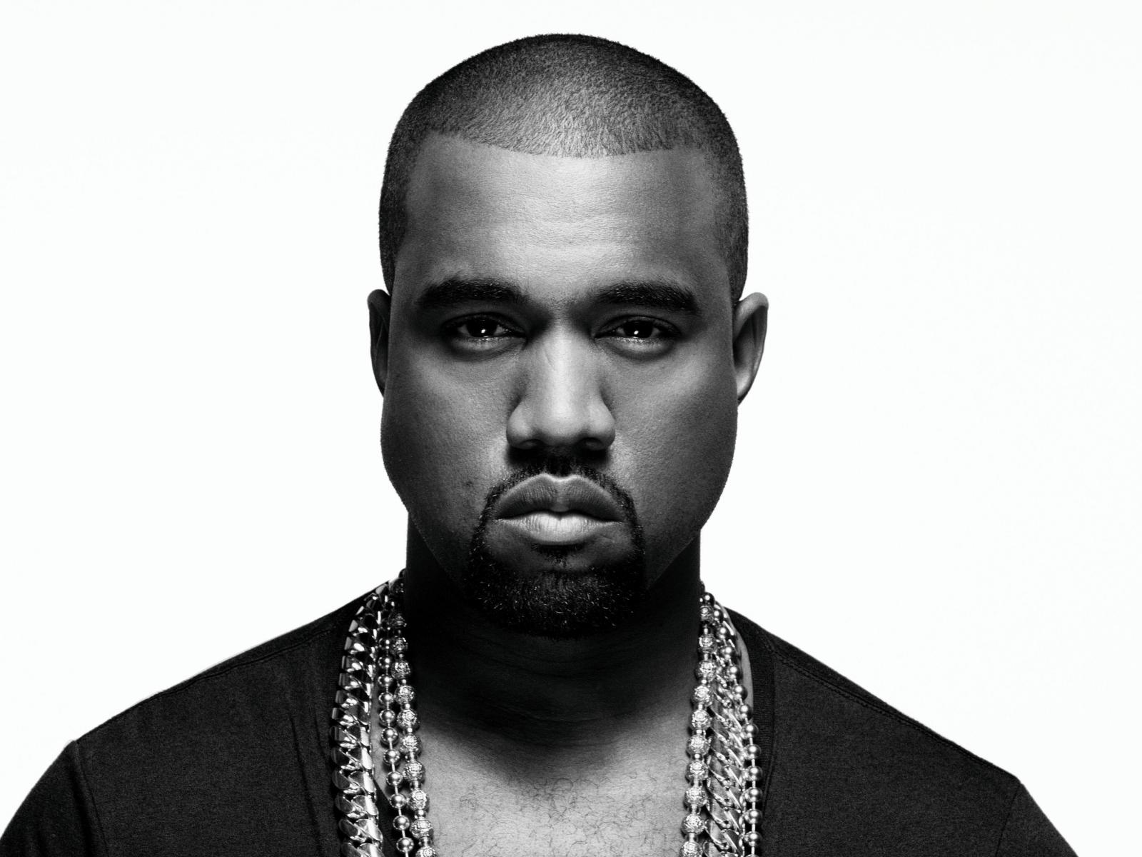 Wallpaper American rapper Kanye West black and white photo
