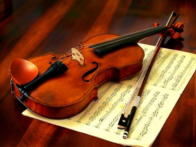 Wallpaper Violin with a bow are on a notebook