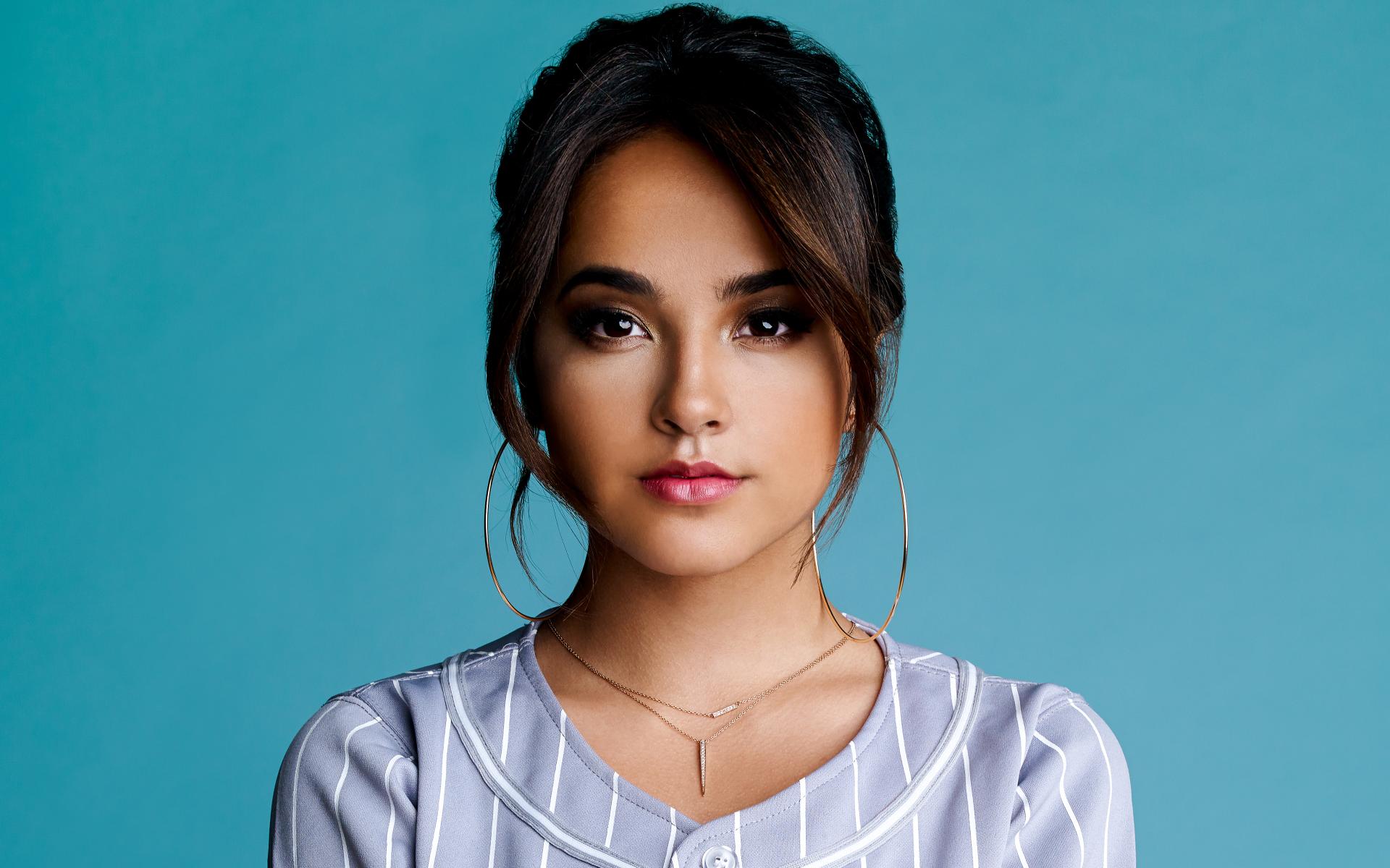 Wallpaper American singer Becky Ji on a blue background