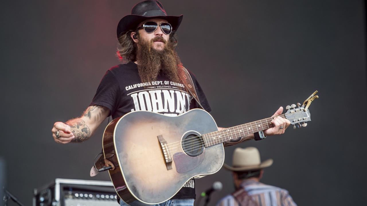 Wallpaper American singer Cody Jinks with a guitar on stage