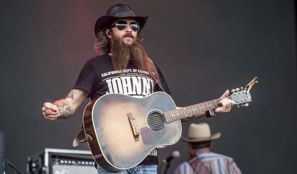 Wallpaper American singer Cody Jinks with a guitar on stage