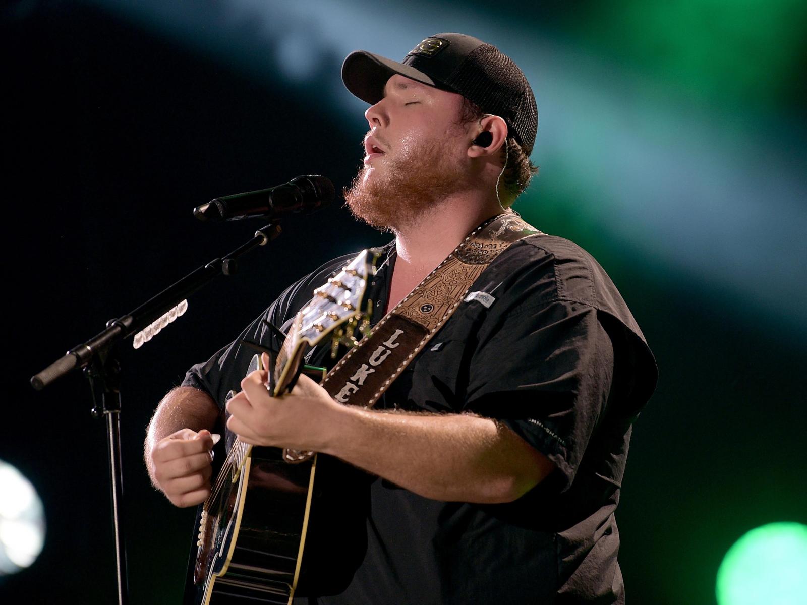 Wallpaper Country singer Luke Combs with a guitar sings on stage