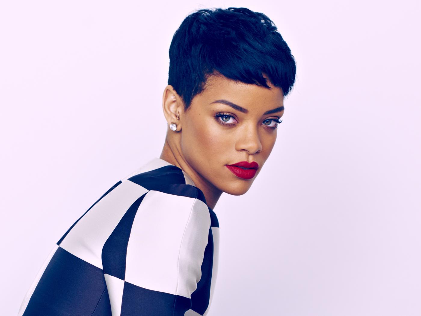 Wallpaper Beautiful bright brunette singer Rihanna with short hair