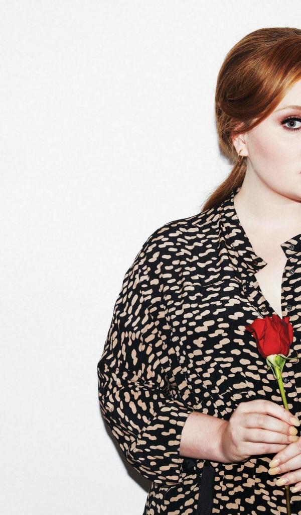 Wallpaper Singer Adele with a red rose in her hand