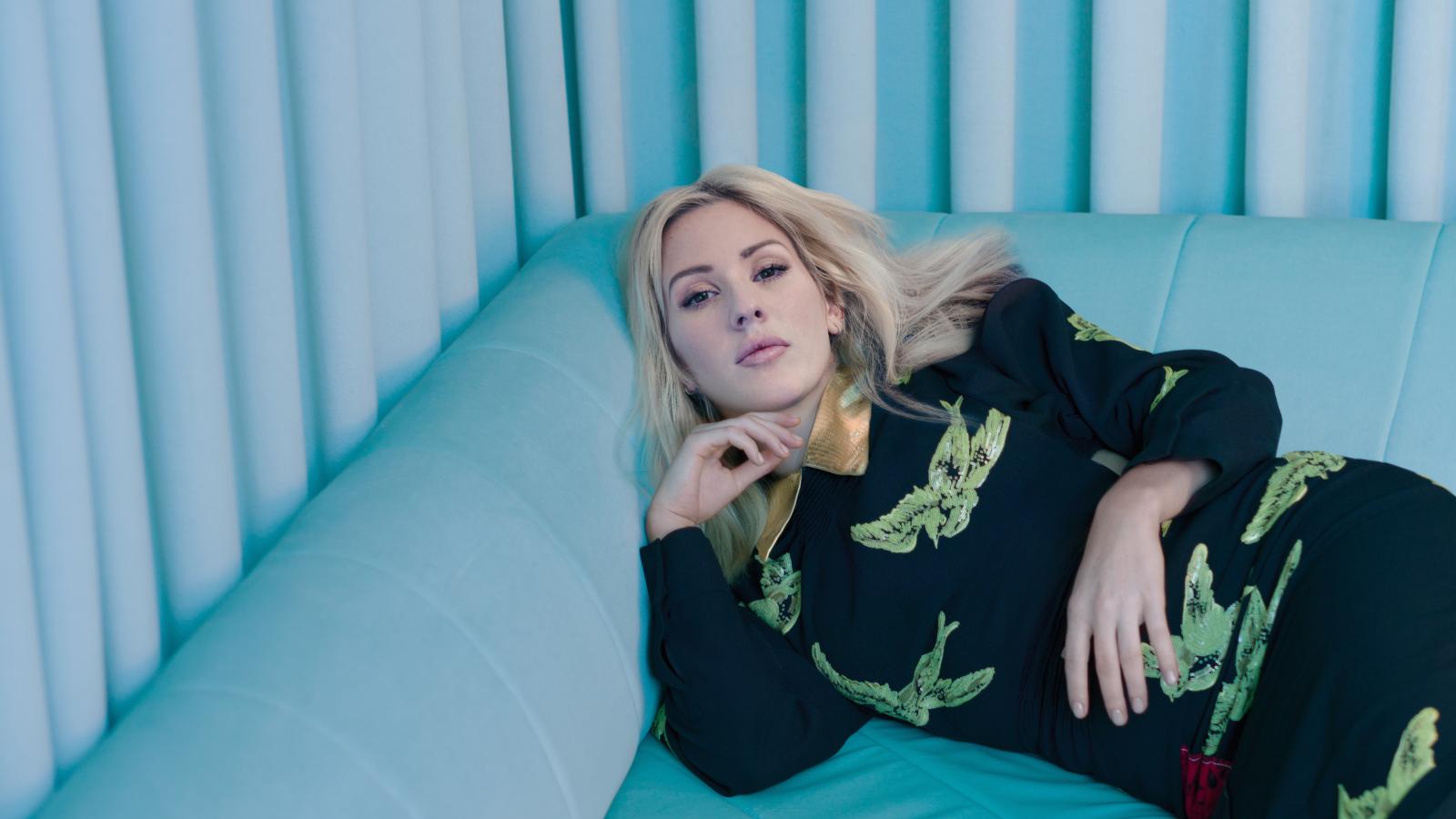 Wallpaper Singer Ellie Golding lies on a blue sofa
