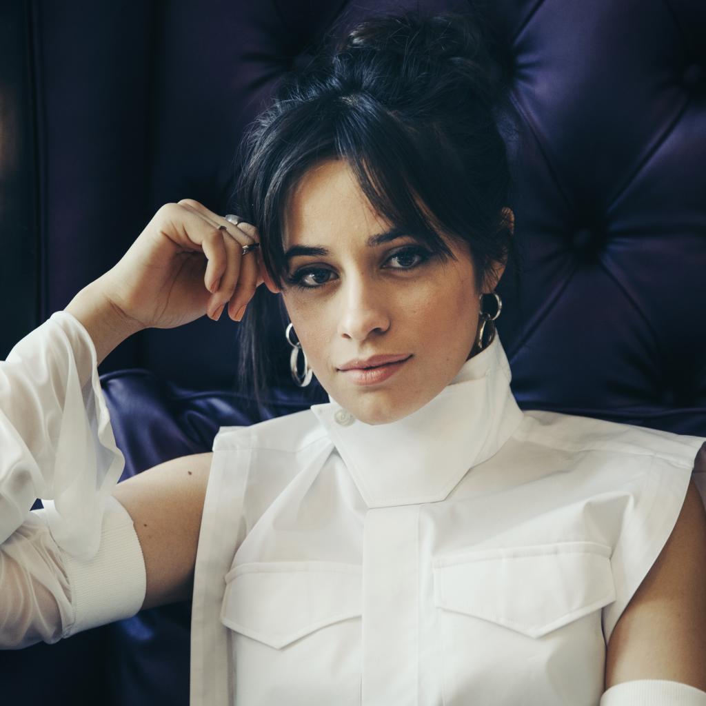 Wallpaper Stylish Camila Cabello in a white suit sits in a chair