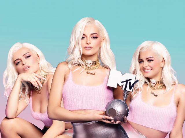 Wallpaper Smiling blonde singer Bibi Rex with an MTV award