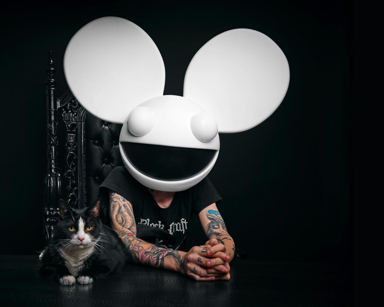 Wallpaper DJ Dedmaus with a cat on a black background