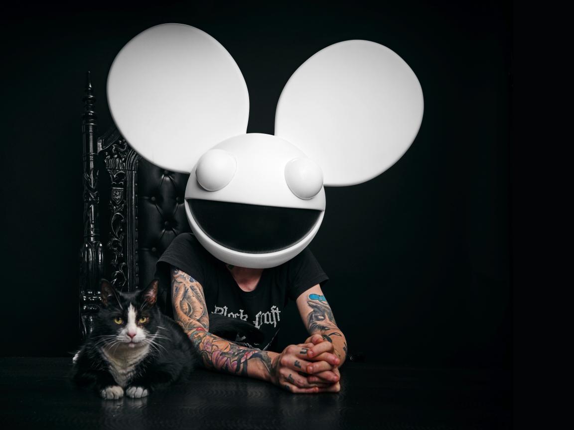Wallpaper DJ Dedmaus with a cat on a black background