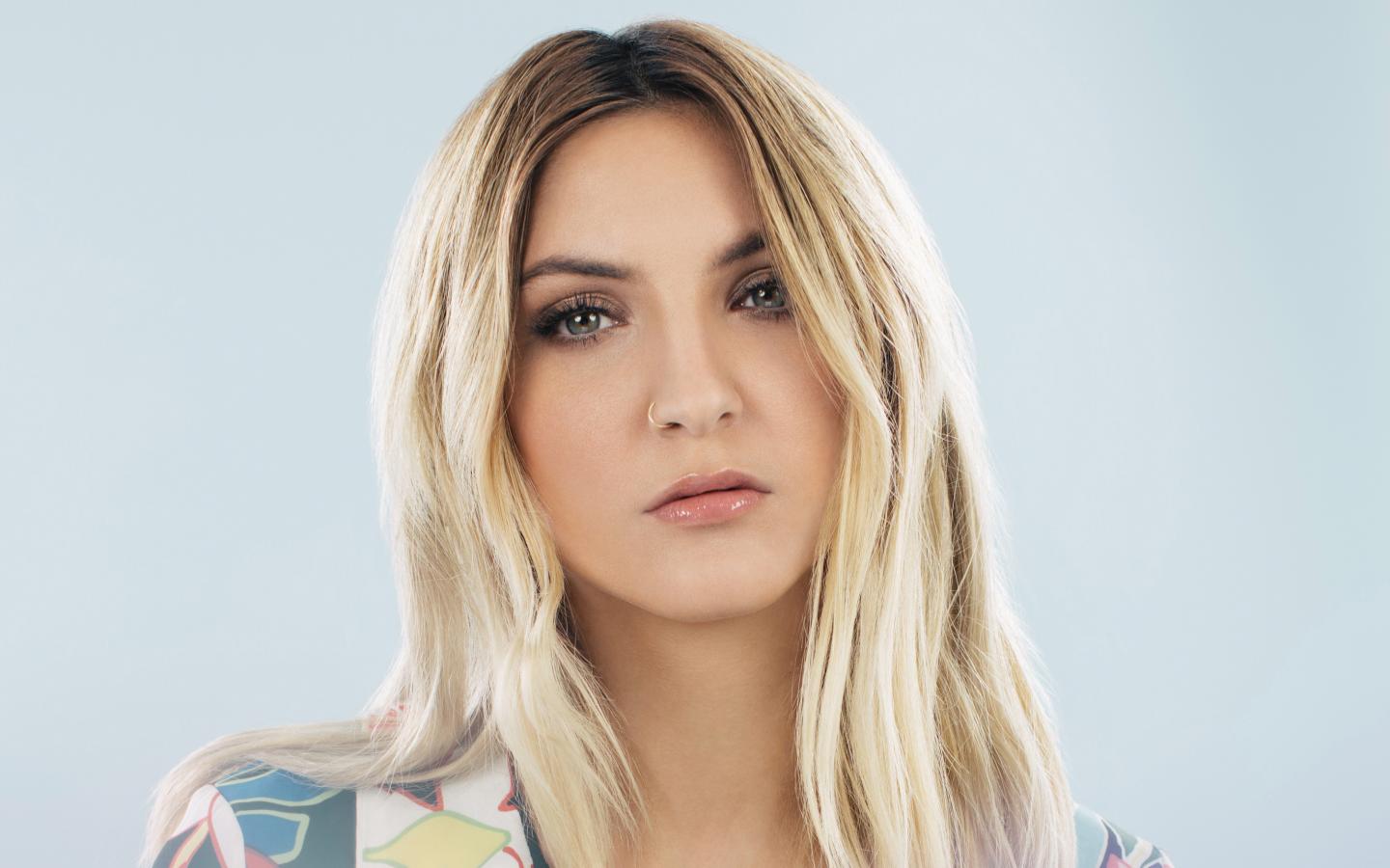 Wallpaper Beautiful blonde singer Julia Michaels on a gray background