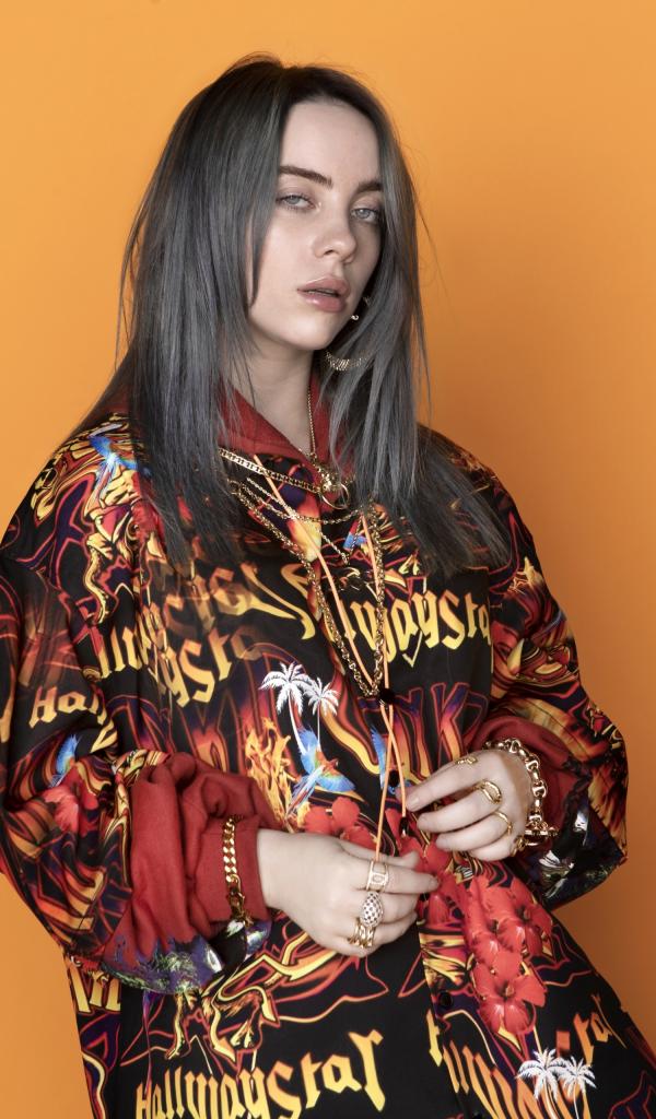 Wallpaper Singer Billy Ailish on an orange background