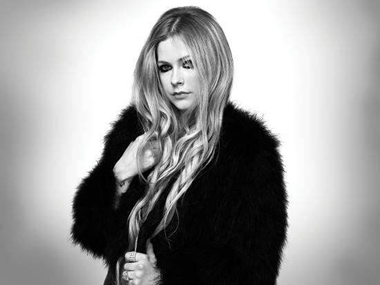 Wallpaper Singer Avril Lavigne in a black and white fur coat