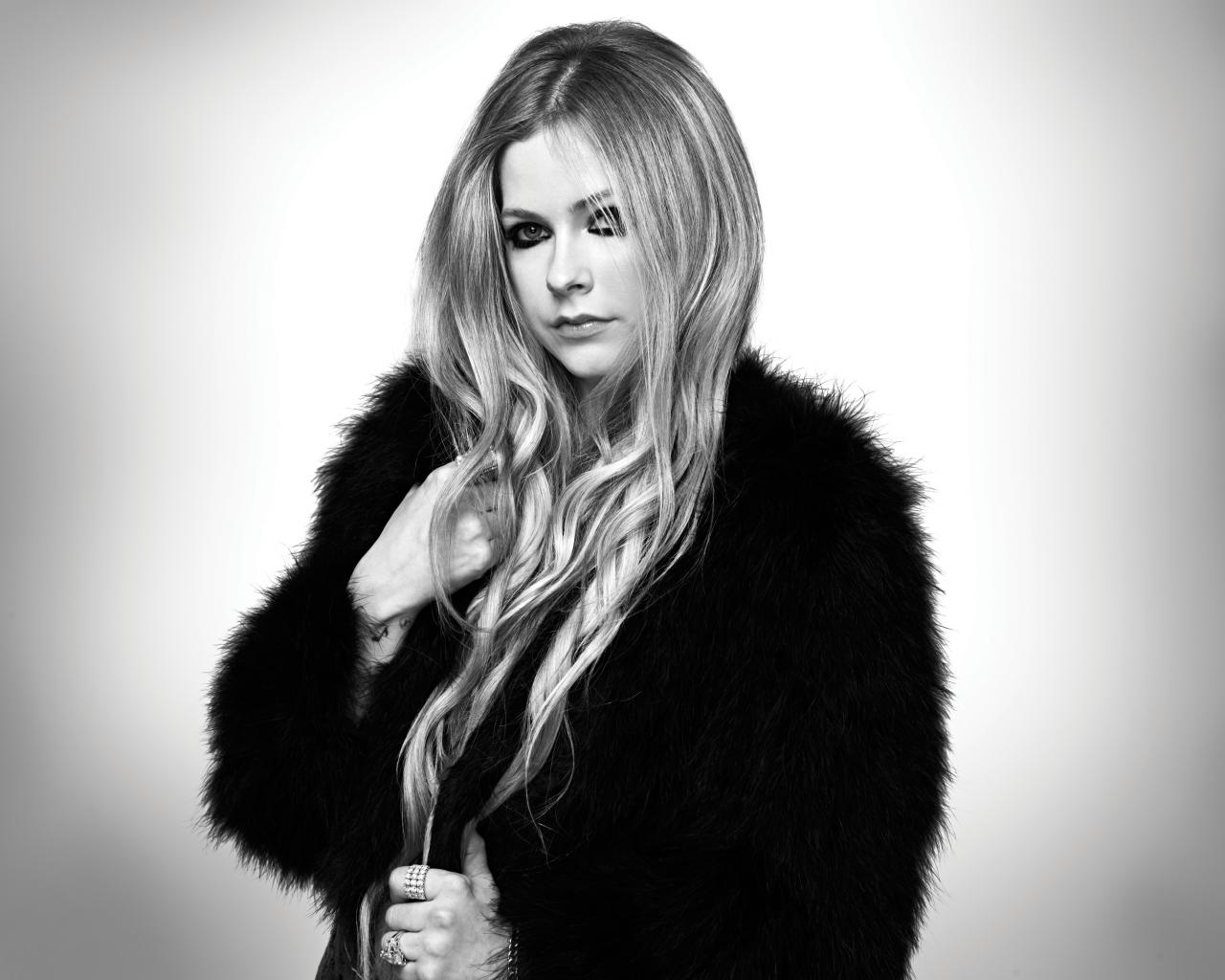 Wallpaper Singer Avril Lavigne in a black and white fur coat