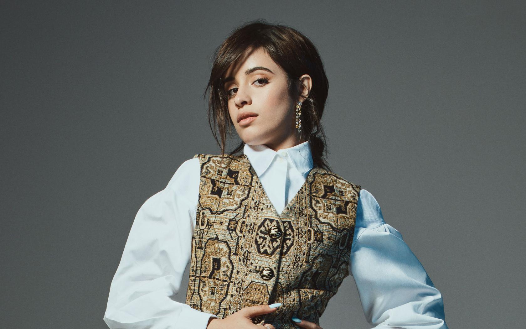 Wallpaper Beautiful singer Camila Cabello on a gray background