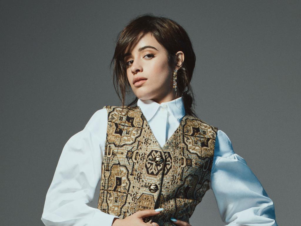 Wallpaper Beautiful singer Camila Cabello on a gray background