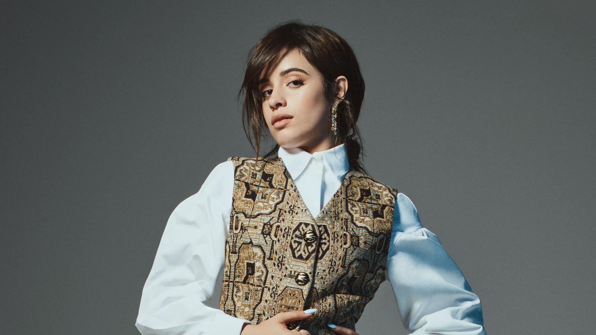 Wallpaper Beautiful singer Camila Cabello on a gray background
