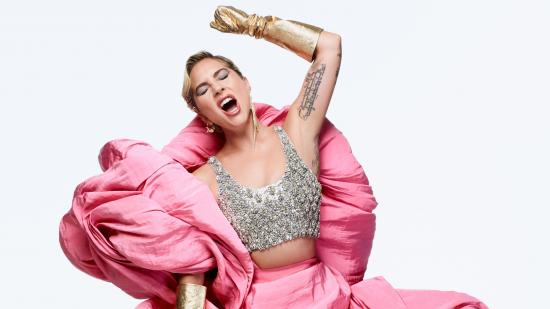 Wallpaper Singer Lady Gaga sings on a white background