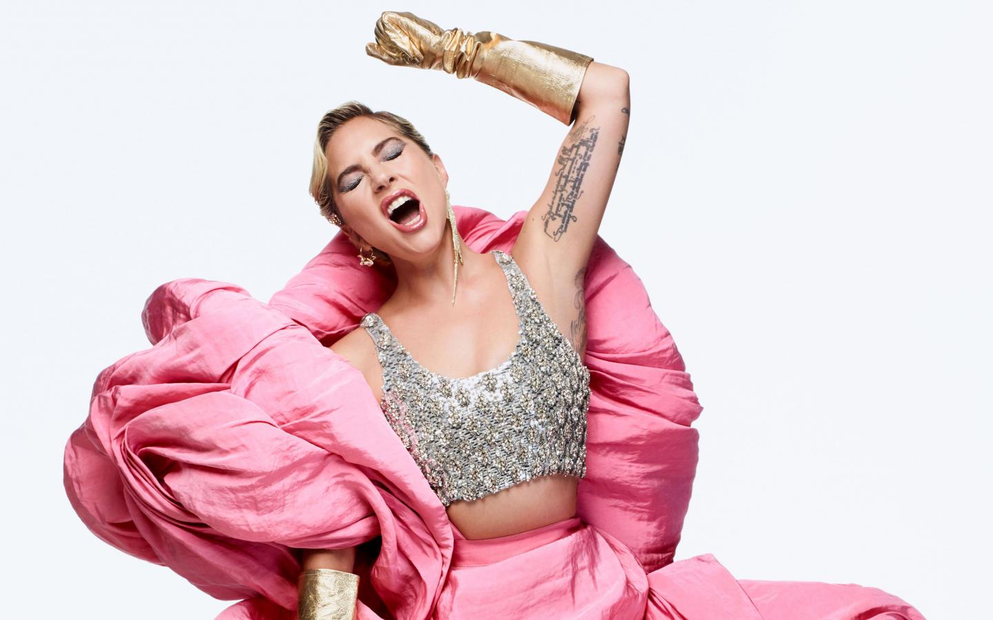 Wallpaper Singer Lady Gaga sings on a white background