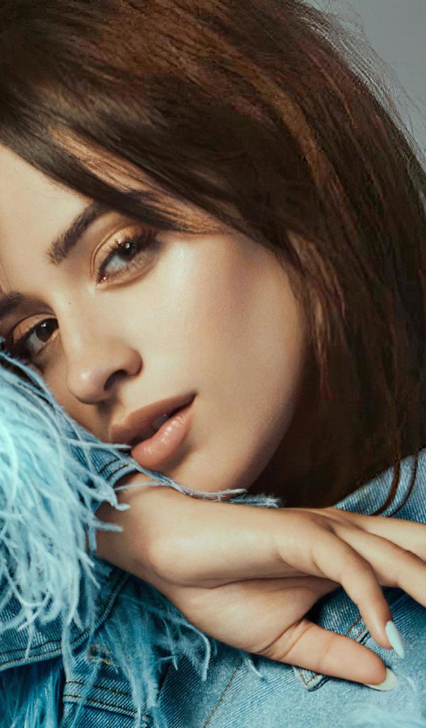 Wallpaper Singer Camila Cabello in a denim jacket on a gray background