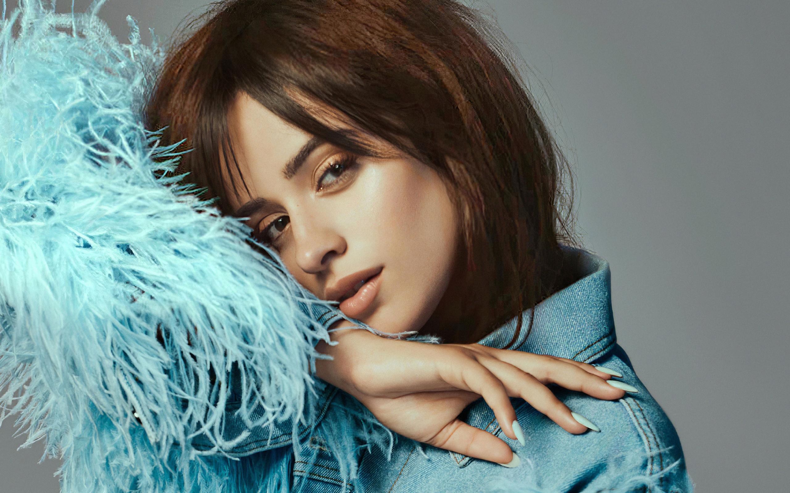 Wallpaper Singer Camila Cabello in a denim jacket on a gray background