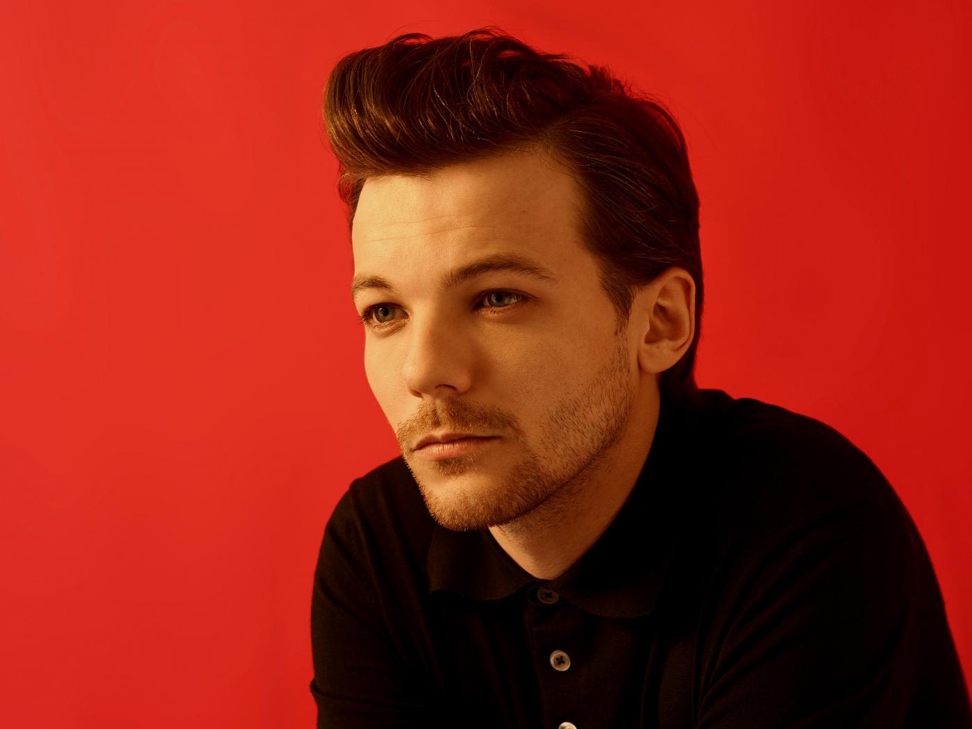 Wallpaper Singer Louis Tomlinson on a red background